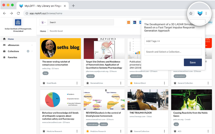 MyLOFT is built around user workflow and help them to discover Library subscribed resources whether they are searching via Google or Discovery Services with in-built proxy for seamless access. User can easily tag, organize, share content and sync between their mobile device and WebApp.